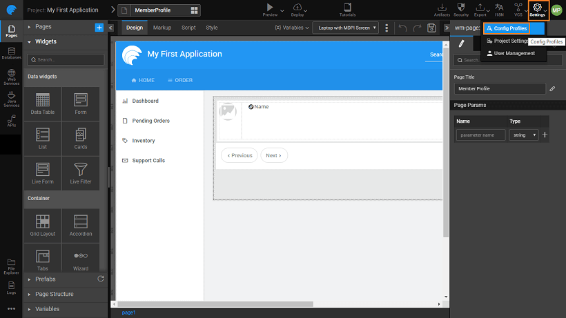 You can configure Database, REST Servers, and more. By default, two profiles are generated for every application.