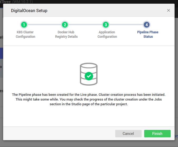 In case you have configured a new cluster, the phase creation is initiated and you can track the progress of the cluster creation process under the jobs section of the respective project in Studio.