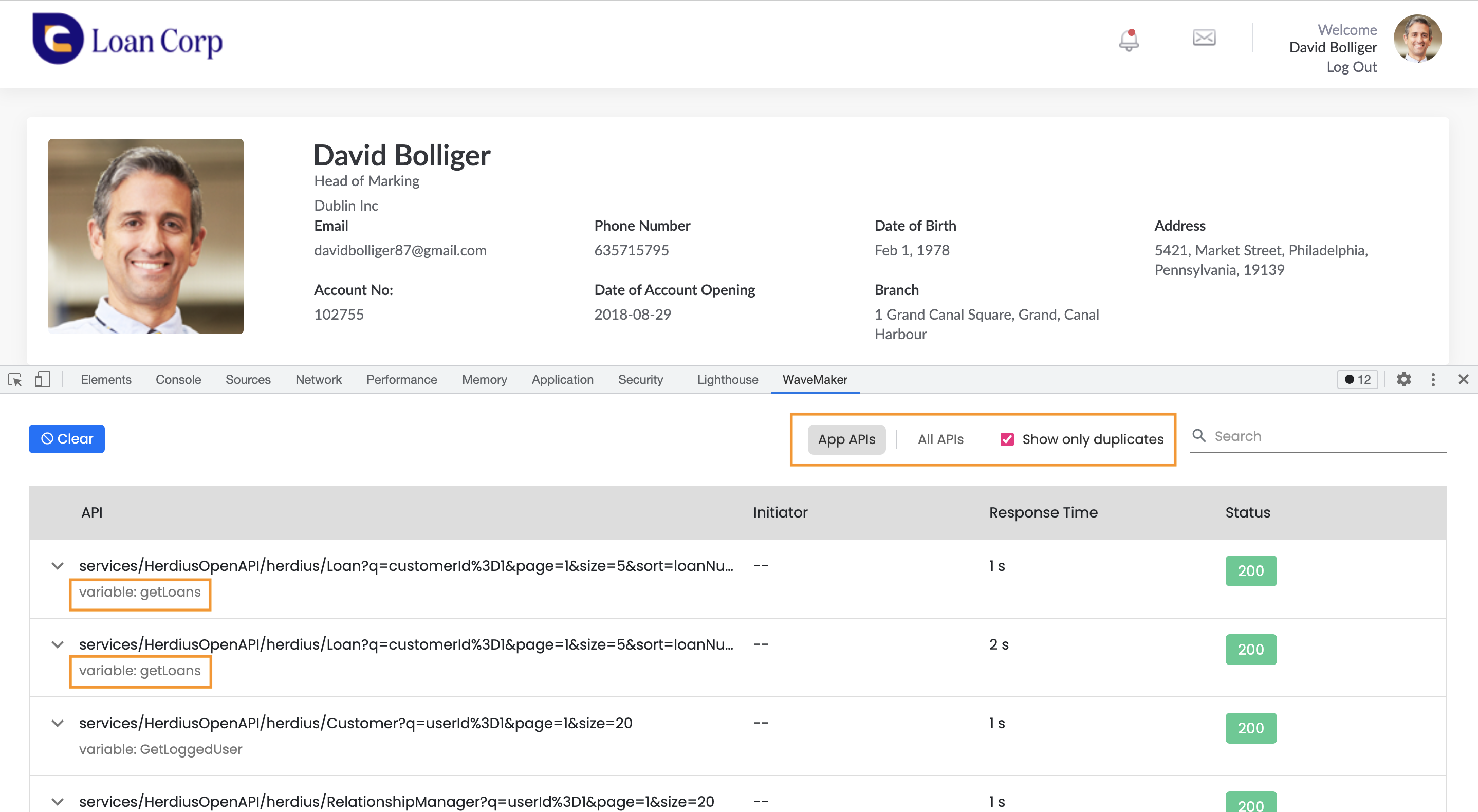 1. View the duplicate requests triggered on the page using the Show only duplicates option.