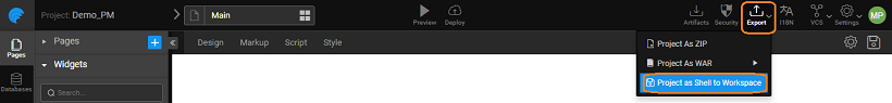 2. Once you have created the app, Export it as Project Shell.