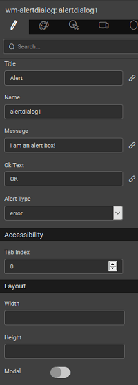 | Alert Type | This property will help in identifying the type of alert in the alert box. Can be set to error (default), information, success, and warning. |