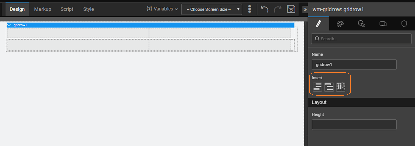 • insert rows to the existing grid. When inserting a new row, the last row pattern is replicated, i.e. if you have the last row with two columns then the new row added will also be a two-column row.