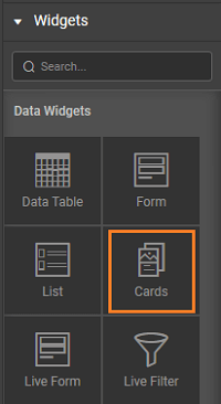 To bind the Cards to your back-end services data, drag and drop the Cards Widget onto the canvas.