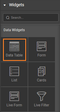 To bind the Data Table Widget to your back-end services data, drag and drop the Data Table Widget onto the canvas.