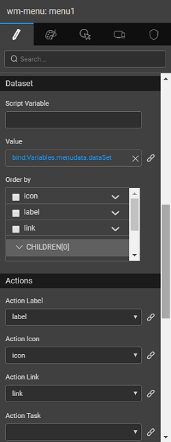 If you follow this structure, WaveMaker picks the label, icon, link and children tags automatically. If you are using different tag names, then you need to specify them in the Menu property as shown in step: 4