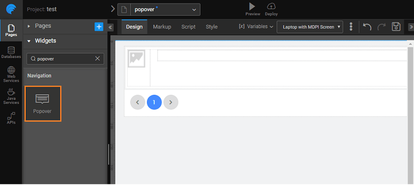 1. Open the page where you want to have the popover, drag and drop the popover widget.