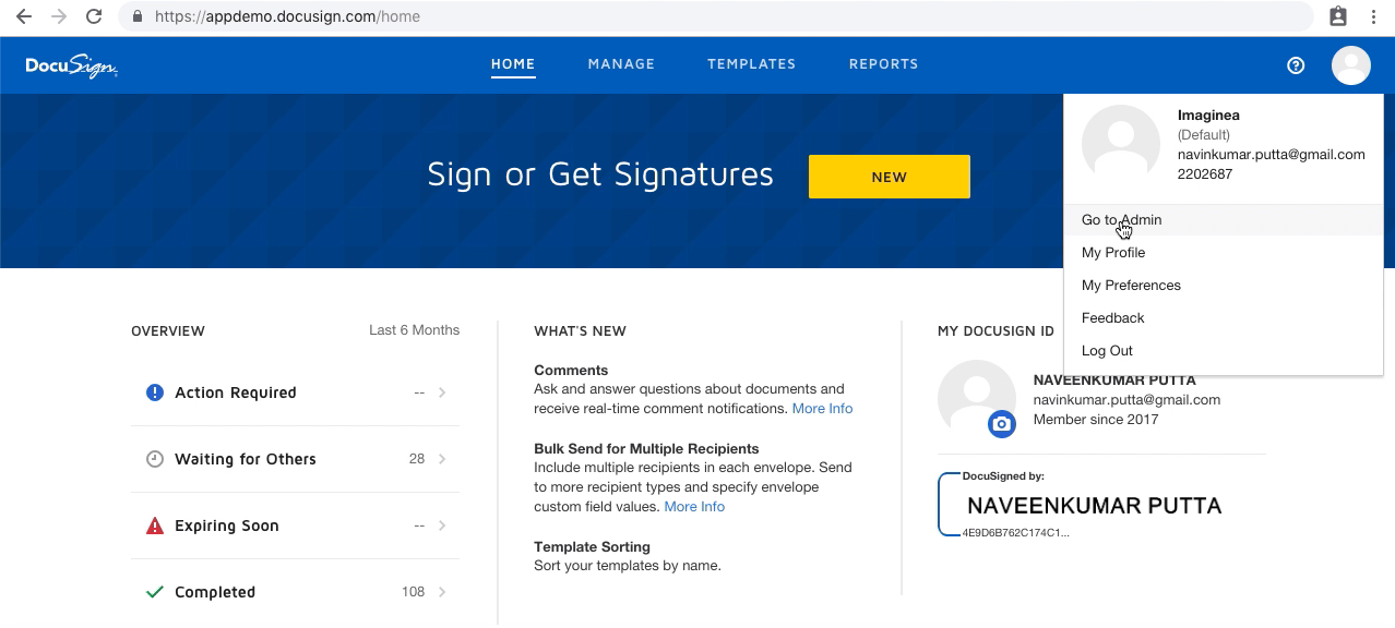 1. Create a developer account in Docusign.