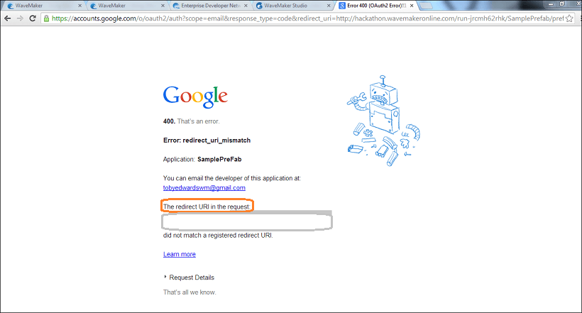 • After you run the application, redirect URL is generated. You might have to click REMOVE TOOLBAR to get the URL. Copy the redirect uri till the callback part only.