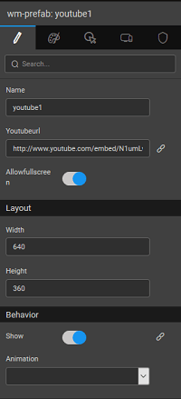 2. Set the Height, Width and Youtube URL properties of the Youtube prefab using the Properties Panel.