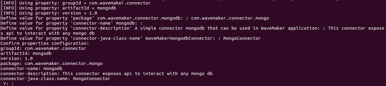 mvn archetype:generate –DgroupId=com.wavemaker.connector -DartifactId=mongodb -Dversion=1.0