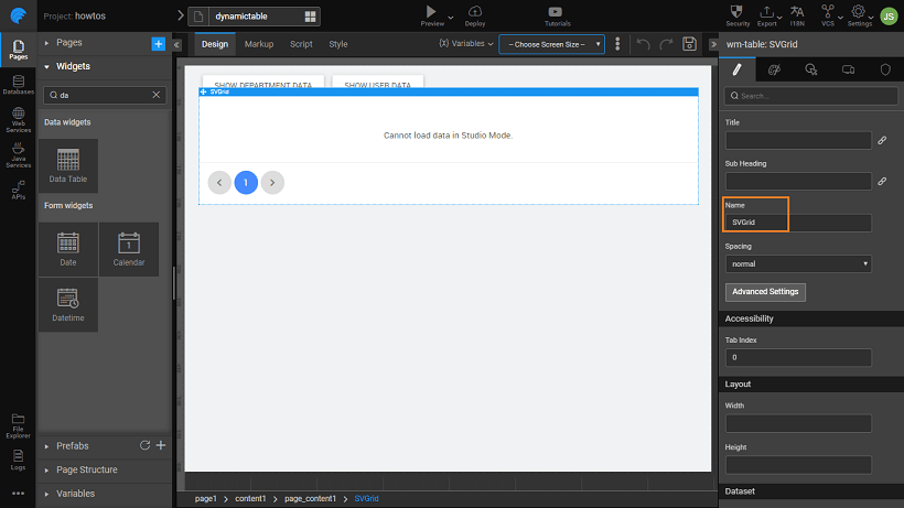 Rename the Data Table to “SVGrid” or any other valid name as per your scenario (this name is used in the JavaScript code later).