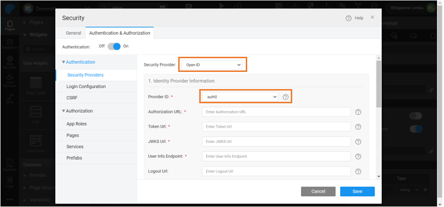 Below are steps to choose Auth0 as Open ID provider in WaveMaker.