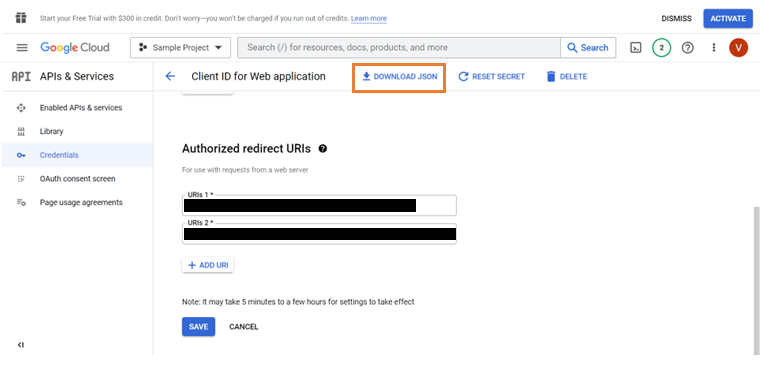 - Set up user account in the Google Console. This is to create an OAuth application to fetch the Client ID and Client Secret.