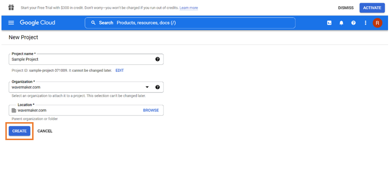 Creating New Project in Google Console