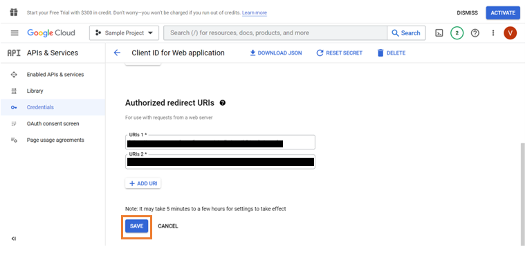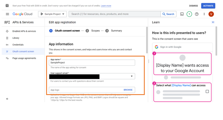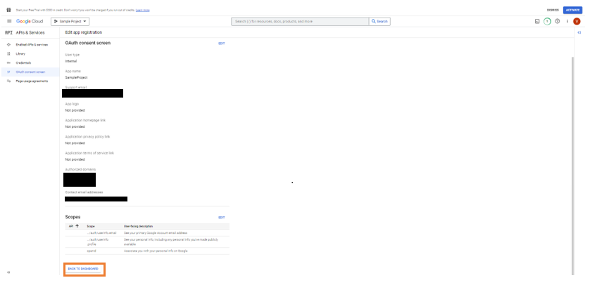 - Set up user account in the Google Console. This is to create an OAuth application to fetch the Client ID and Client Secret.