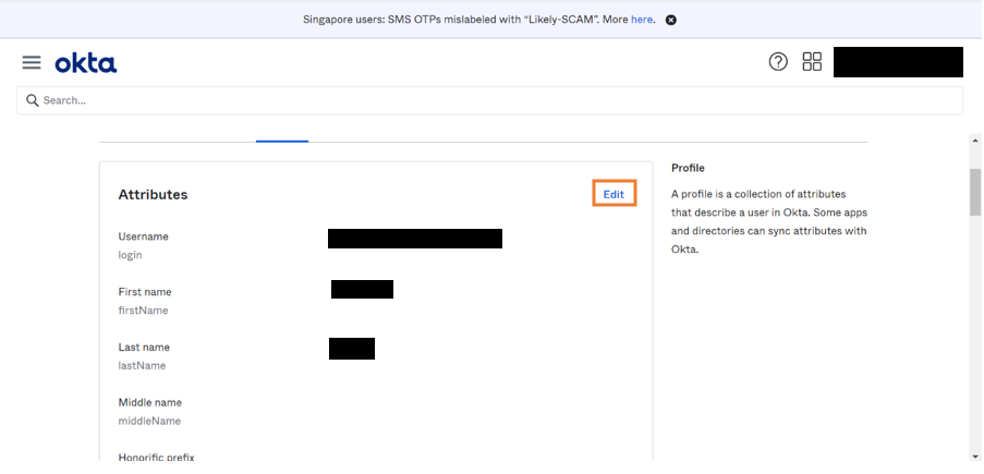 - Go to Profile and click on Edit to provide the value for the role attribute.
