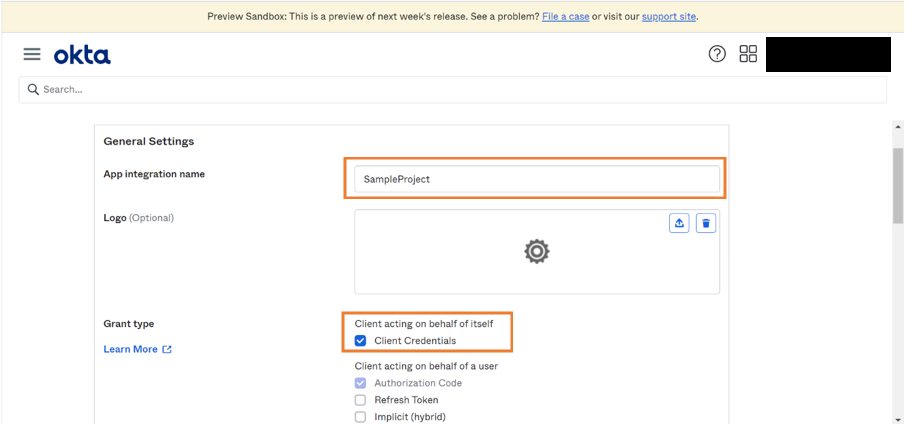 - Enter the App Integration Name and check Client credentials as Grant type.