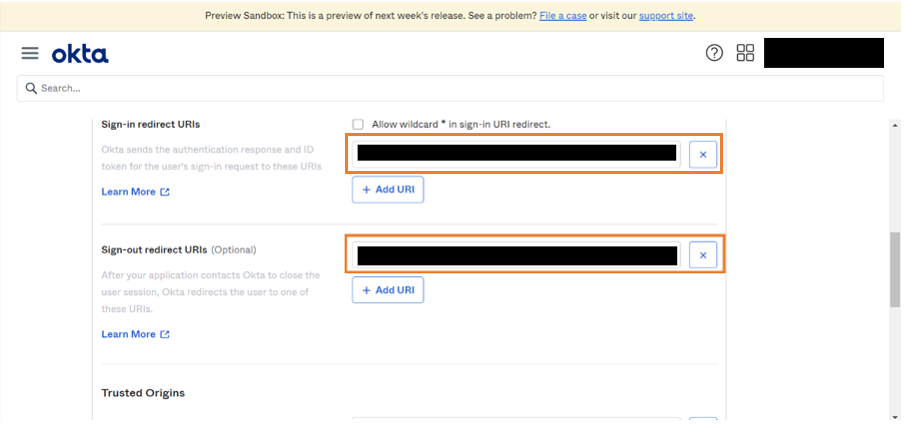 - Enter sign-in redirect URL and sign-out redirect URL.