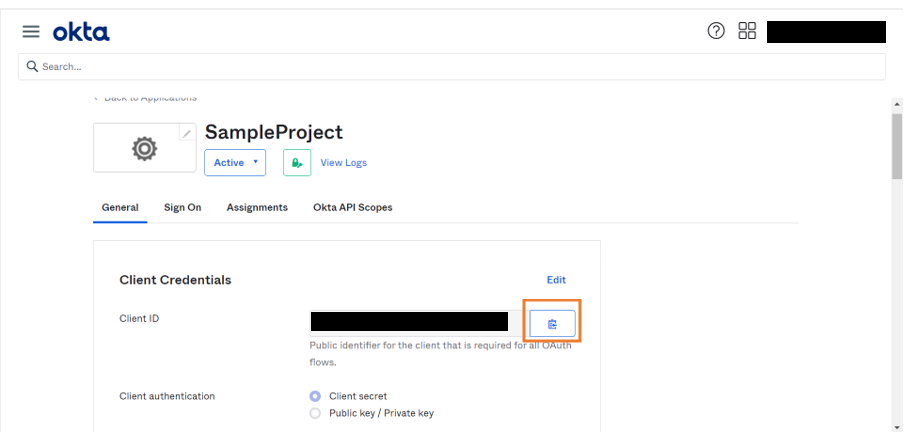 - Click Copy to copy the Client ID to clipboard. Later, provide this information in WaveMaker security configurations.