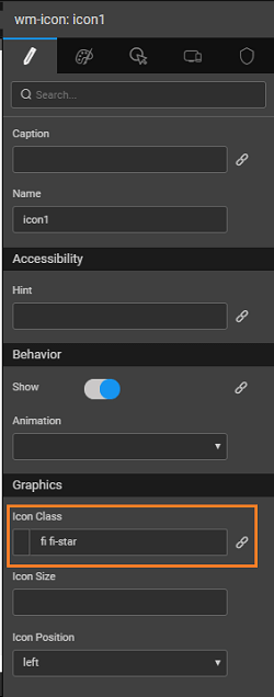 In WaveMaker, widgets can display icon for Panel, Button, and more. You can choose the icons from the list of wavicons or font-awesome icons. You can use glyph icons, available here.