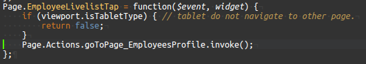 5. Design a partial page that contains the employee profile in detail with Employee ID Param. Bind this partial to the selected-employee based on the Employee ID Partial Param to display the Employee Profile. For more information, see How to create a Partial.