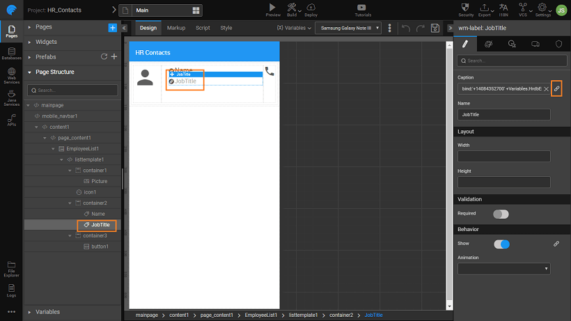An application has to be built to list the phone numbers of employees in an organization. The user should be able to call directly from the app. For the database, we will be using the sample HR database that is available in WaveMaker.