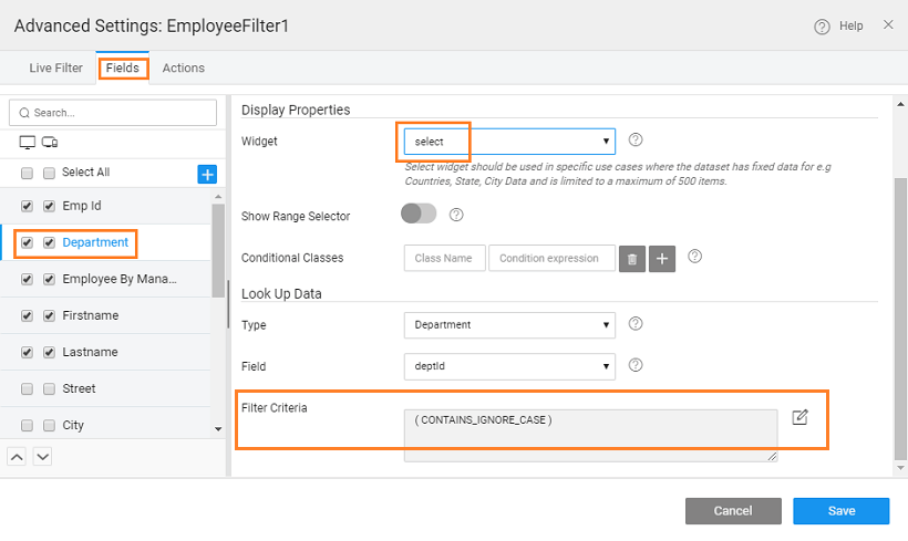 • You might have to set the Widget to Select to enable the Filter Criteria option.