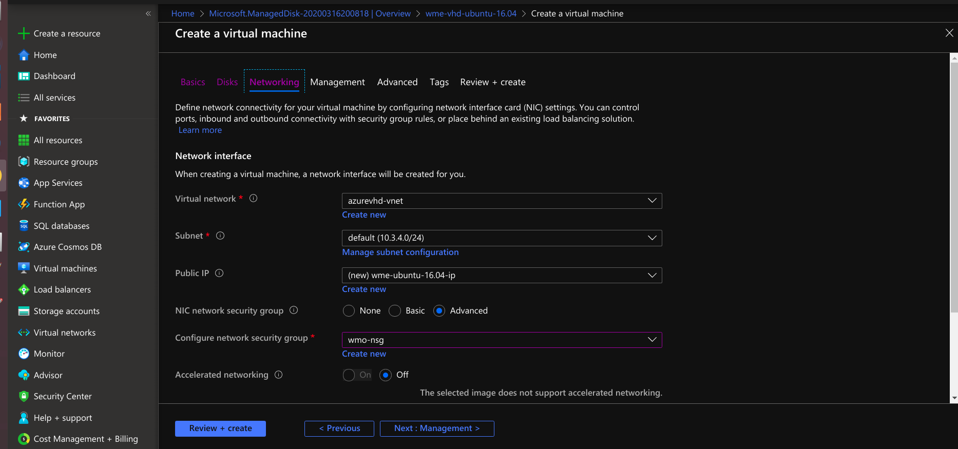 - Create fixed vhd with ubuntu 16.04 OS.