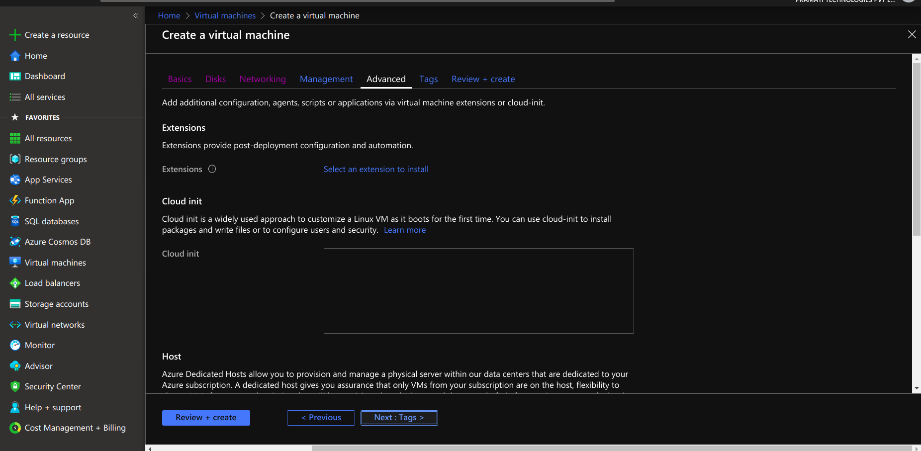 • After reviewing the virtual machine select creation option for creating a virtual machine.
