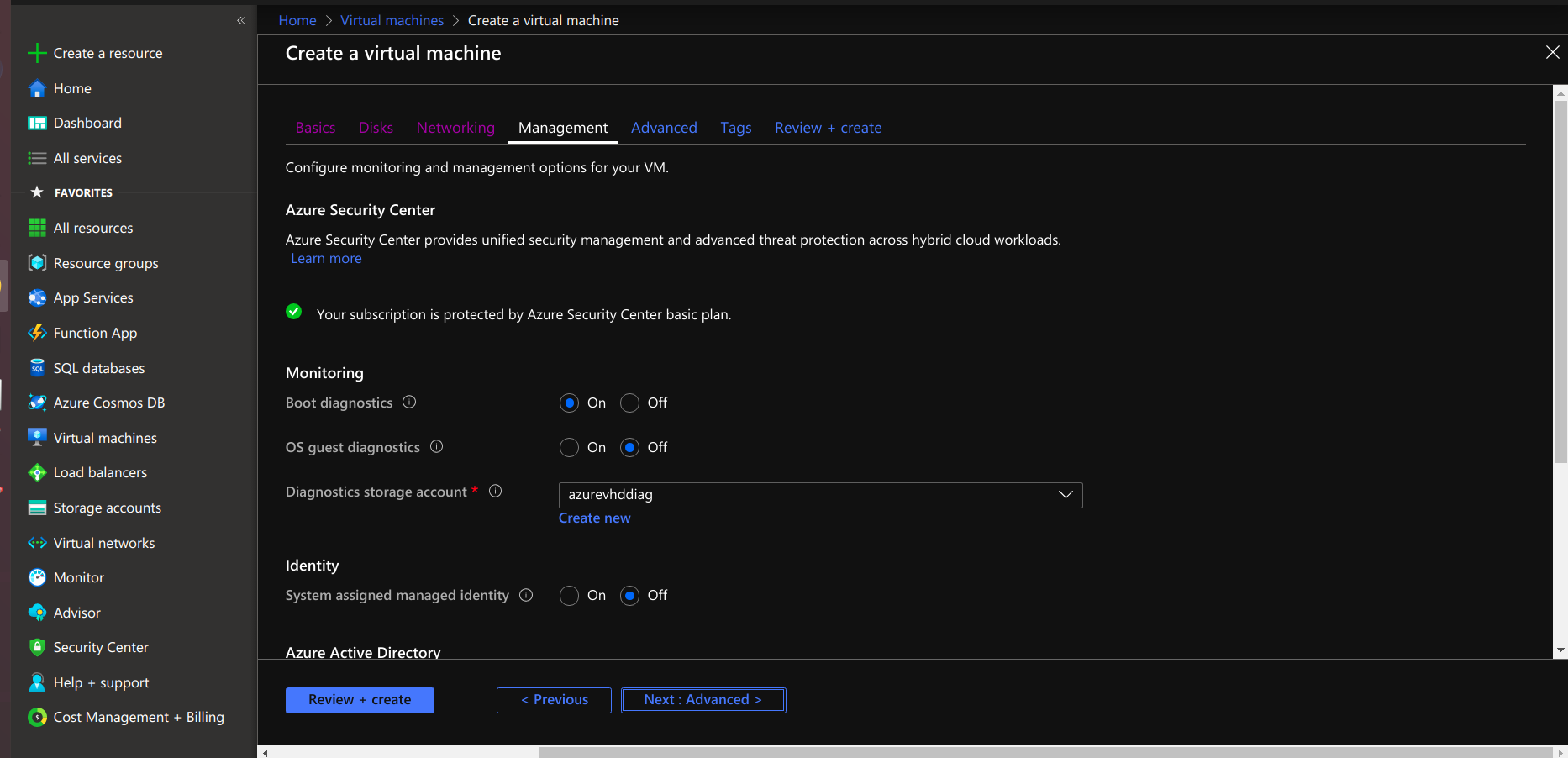 • After reviewing the virtual machine, select the creation option for creating a virtual machine.