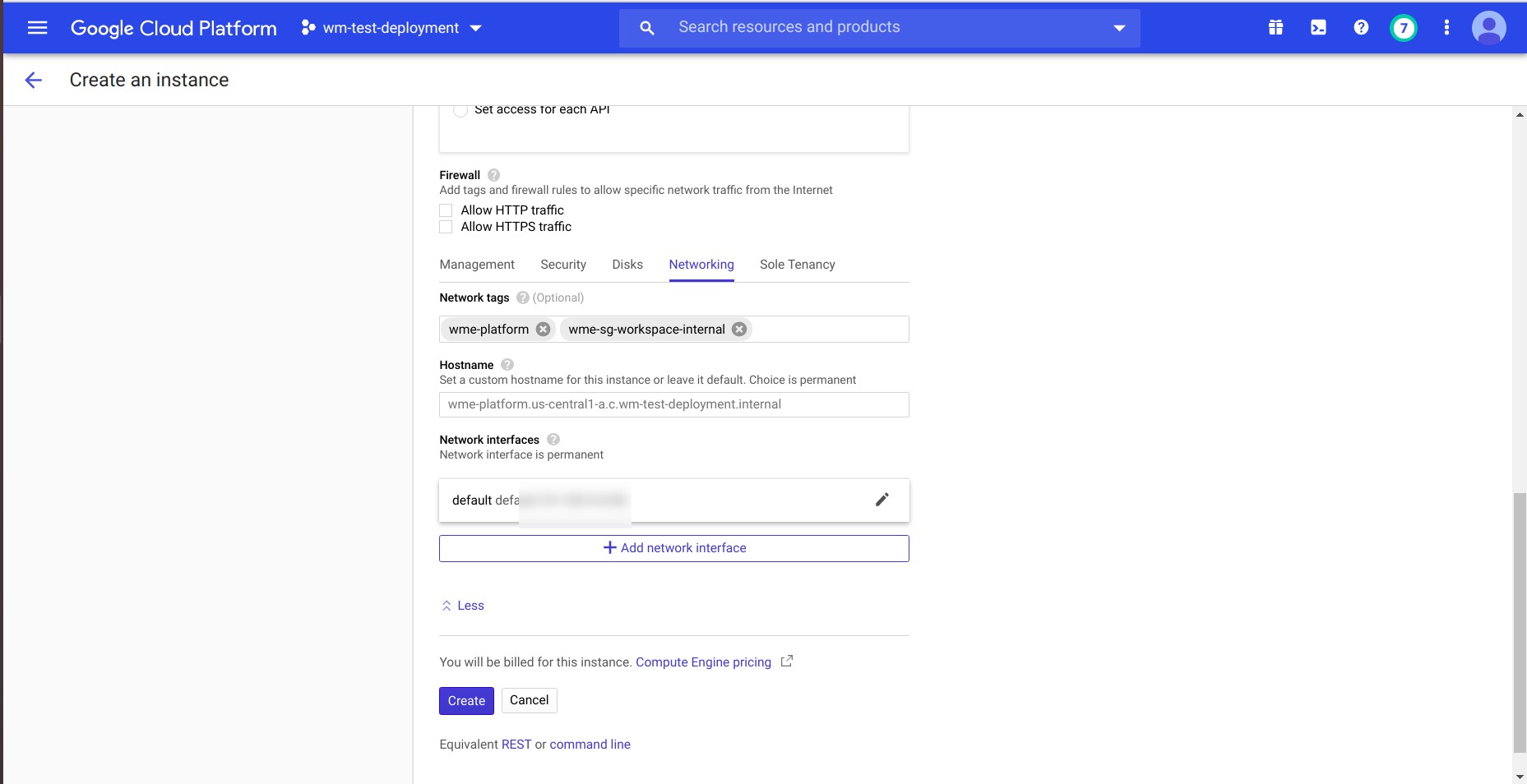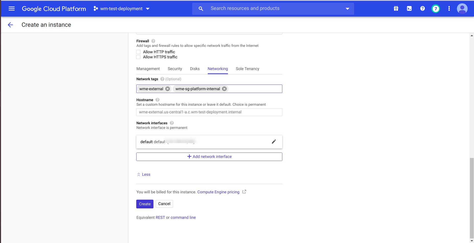 • At network section provide respected network tags of your firewall if you using source and target tags at firewall rules and create Instance.