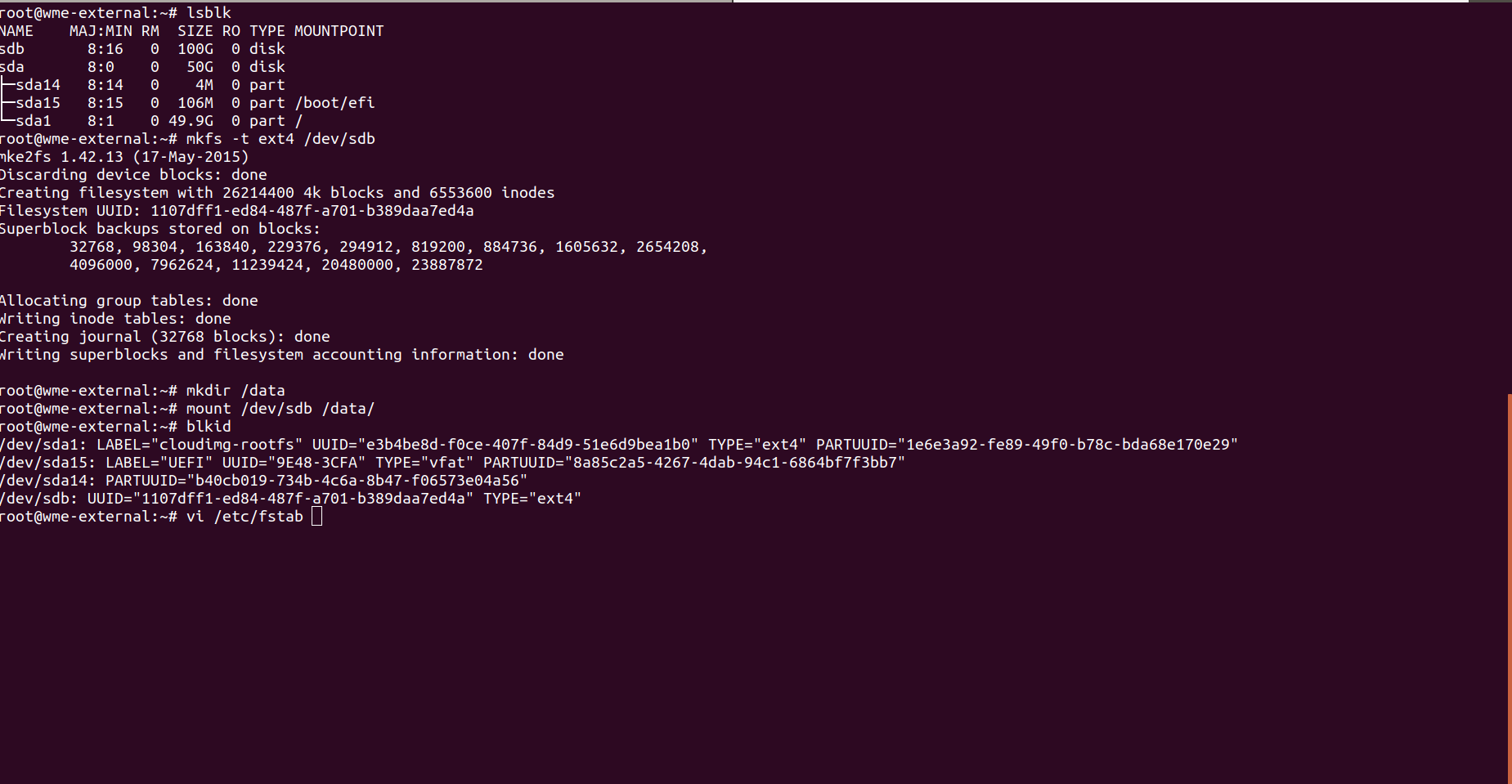 mkfs -t ext4 /dev/sdd
