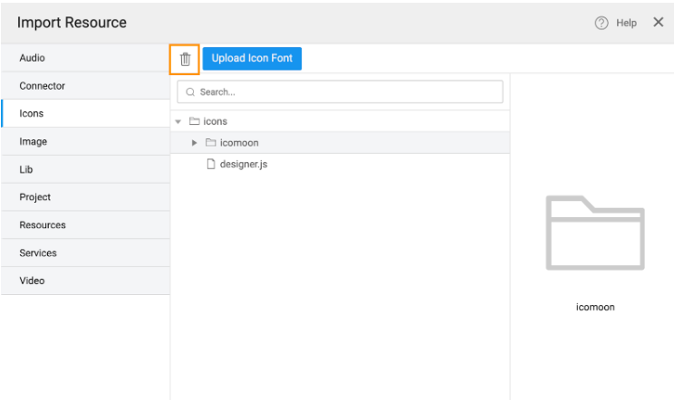 1. Click the Delete icon to delete the selected icon font family.