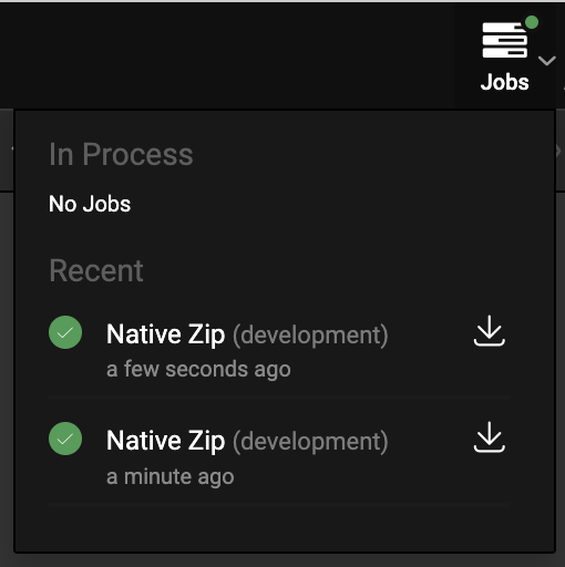 1. When the job is completed, you can download the ReactNative zip by clicking on the Download icon, as shown below.